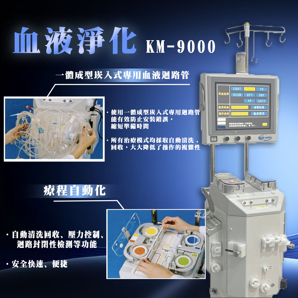 使用日本原裝進口KM-9000 體外多功能血液淨化裝置